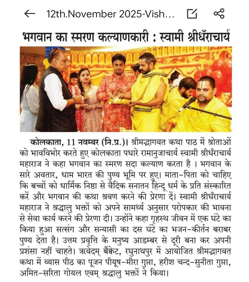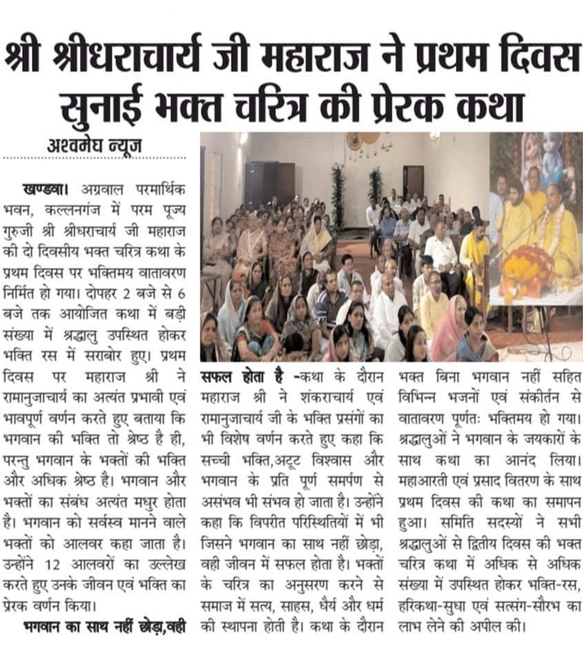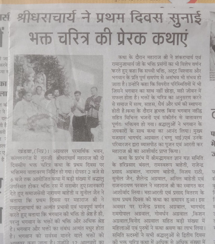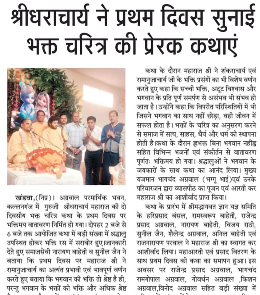 जगद्गुरु श्रीधराचार्य जी — समाचार तथा लेख